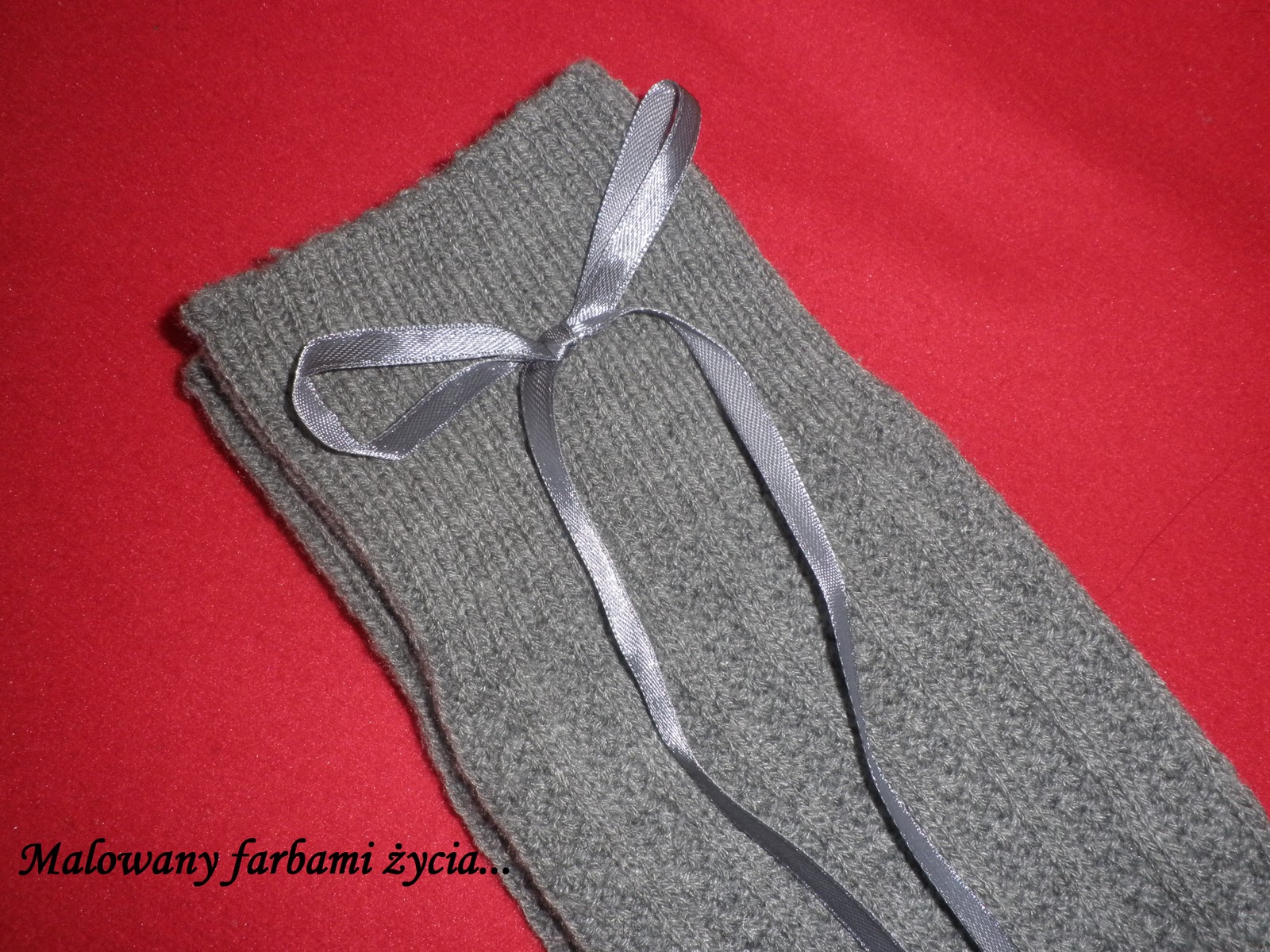 Ściągacz z kokardką będzie fajnie wystawał ponad cholewę buta. Jedyny mankament jest taki że przy moim wzroście (170 cm) te długie skarpety nie sięgają "za" kolano niestety. Ale nie jest to aż tak duży problem. Ważne że są ciepłe i myślę że dobrze spełnia swoje zadanie ocieplania moich łydek w zimne dni :))